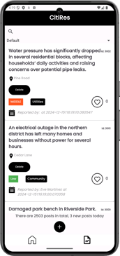 A citizen reporting app was developed for cities to limit personnel expenses in diagnosing maintenance issues.